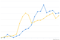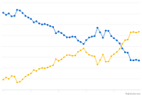 Trend showing the shift in popularity of trucks versus cars by year