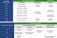 Vehicle Weight Classes and CategoriesCharts illustrate the vehicle weight classes and categories used by the Federal Highway Administration (FHWA), the U.S. Census Bureau, and the U.S. Environmental Protection Agency (EPA). Last update June 2012